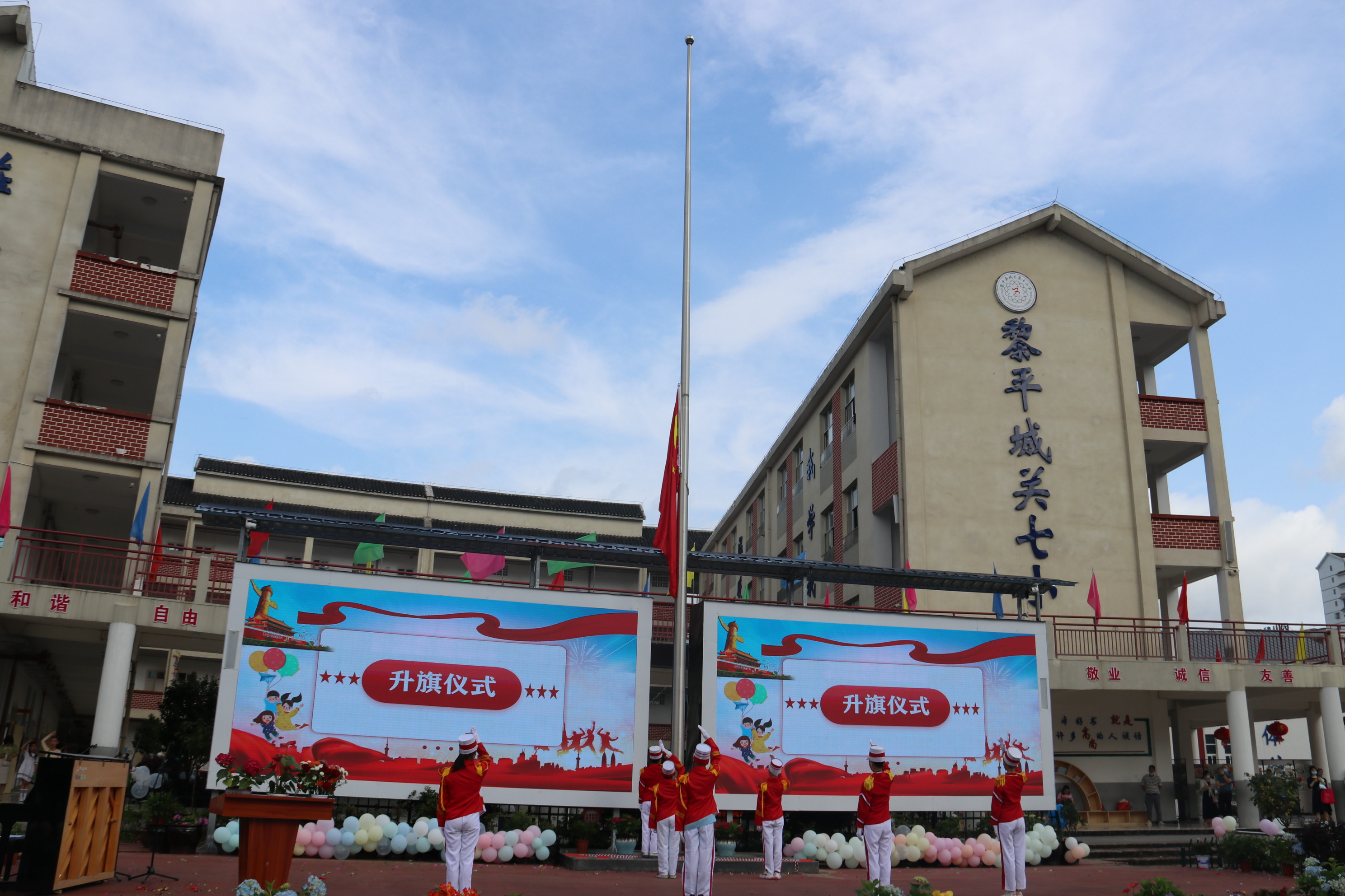 在黎平县第七小学“六一”儿童节活动现场,随着国歌的响起,五星红旗的升起,拉开了本次“六一”儿童节活动帷幕。大家一起唱国歌,看着那慢慢升起的五星红旗,让人心里总是有一种难以用言语形容的澎湃感。雄壮的国歌声,神圣的国旗,唤起心中无比的骄傲和自豪。